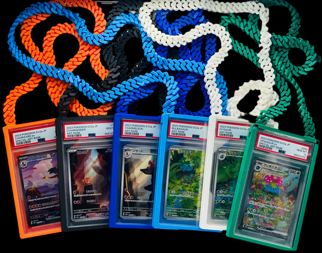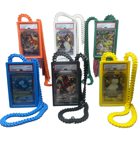 Good Game Bros LLC Pokemon TCG Slab Necklaces A Displays By Stewy Collections Elevate Your Style with Unique Pokemon Card Slab Necklaces! Discover the perfect blend of fashion and fandom with our Pokemon Card Slab Necklaces Collection: Displays By Stewy. The chain and pedant allows you to showcase your favorite Slab in a stylish and eye-catching way. Quality Craftsmanship: Each necklace is crafted with care, ensuring durability and a polished...
